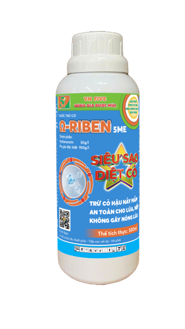 RIBEN 5ME là thuốc trừ cỏ kết hợp hai hoạt chất mạnh, được dùng để trừ triệt để các loại cỏ lá rộng, cỏ hòa thảo (như lồng vực, đuôi phụng) và chác lác. Sản phẩm có công thức không gây nóng lúa.